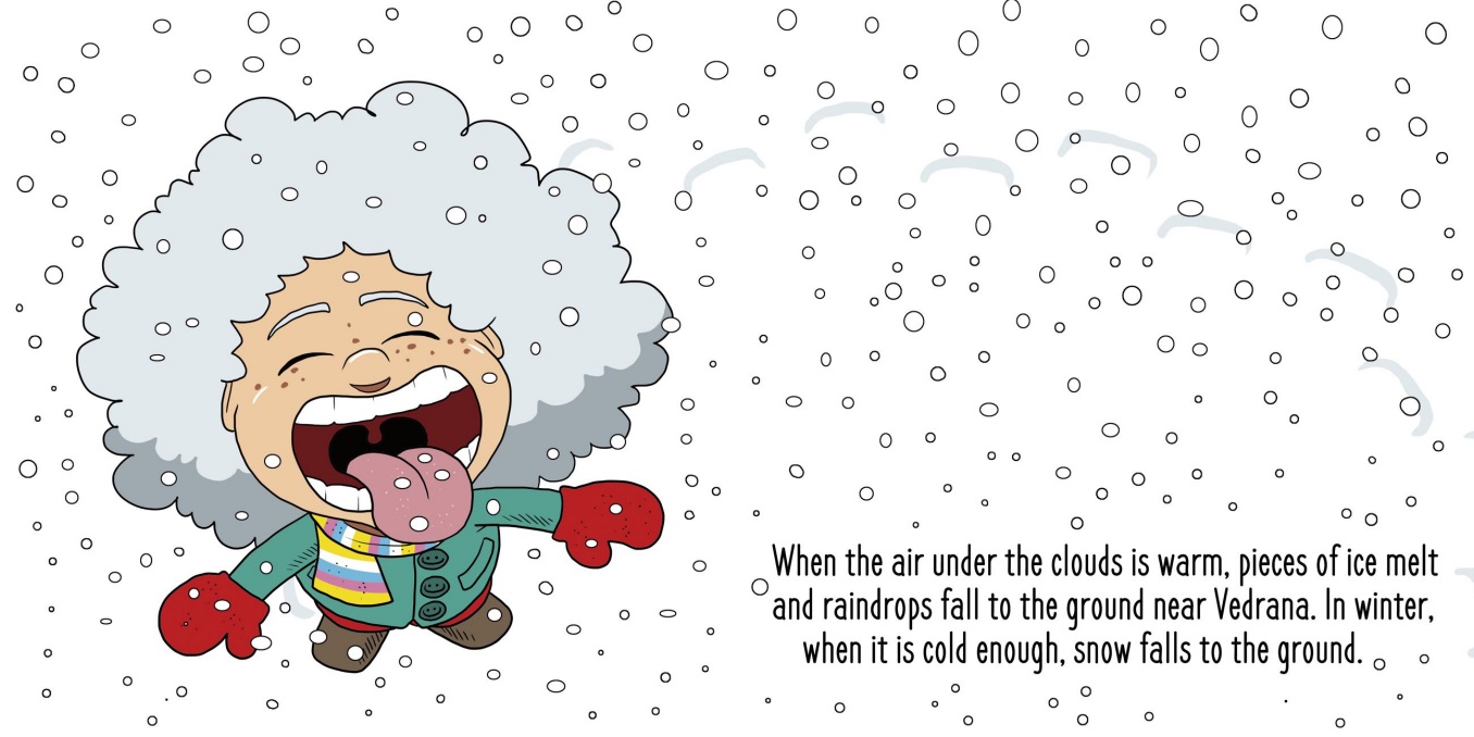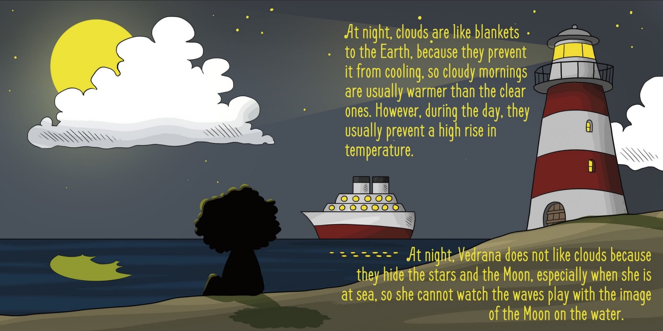 The theme of "Cloudy" is cloud. The little girl Vedrana (Claire) helps