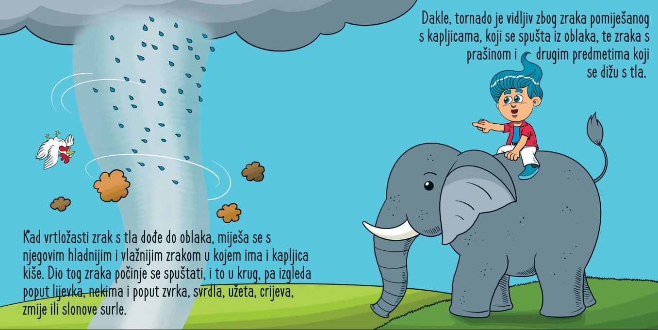 "Tornadasta" je osma u seriji meteoslikovnica "Vremenaste priče" - slikovnica na temu meteorologije. Cilj im je educirati - približiti neke često spominjane meteorološke termine mladima, osobito djeci, kako bi kasnije bolje razumjela i imala koristi od meteoroloških informacija, posebice u ovo doba sve očitijih klimatskih promjena i globalnog zatopljenja.